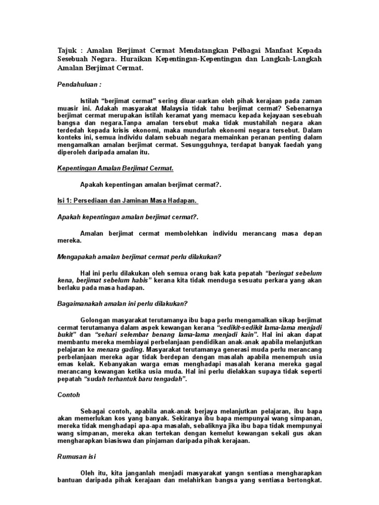Berjimat Cermat Amalan Mulia Karangan Spm